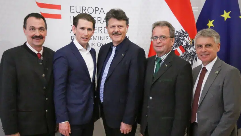 Bundesminister Kurz sagte zu, die Anliegen des Österreichischen Landarbeiterkammertages bei zukünftigen Verhandlungen im Auge zu haben.